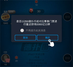 · 当玩家报名某赛事时,玩家身上既有该赛事的门票1张,又有满足该赛事报名的德扑币。优先扣除玩家身上的赛事门票,以完成报名。