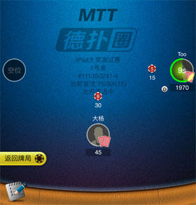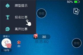 当玩家在旁观赛事时,产生参与赛事的动机,在MTT左上角菜单栏中有报名赛事按钮,旁观玩家可以通过点击该按钮完成报名。